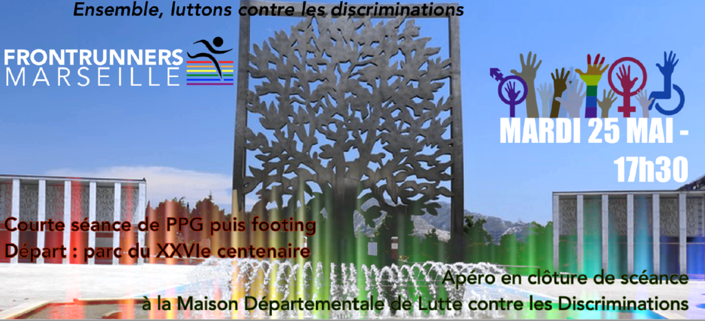 Dans le cadre du mois de lutte contre les LGBTQI+phobies, organisé par la Maison Départementale de Lutte contre les Discriminations, qui aura lieu du 04 au 29 Mai 2021, les FrontRunners Marseille organisent une animation sportive le mardi 25 Mai à partir de 17h30